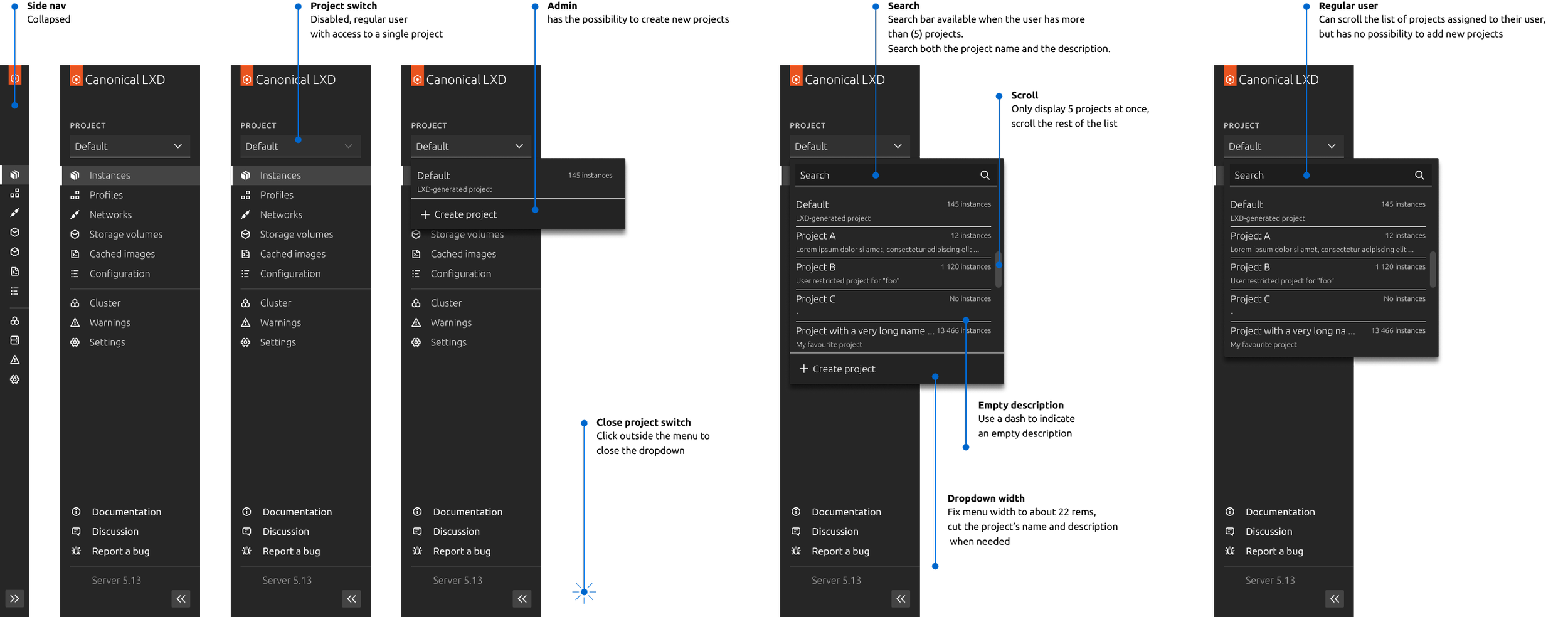 For high-fidelity designs, we worked within Vanilla — Canonical's open-source CSS framework used across their entire product suite. Designing within a shared system meant staying in close conversation with the broader design team to make sure LXD felt consistent with the rest of the portfolio. It also meant contributing back — regular discussions helped us flag gaps in the framework and push the system forward together.